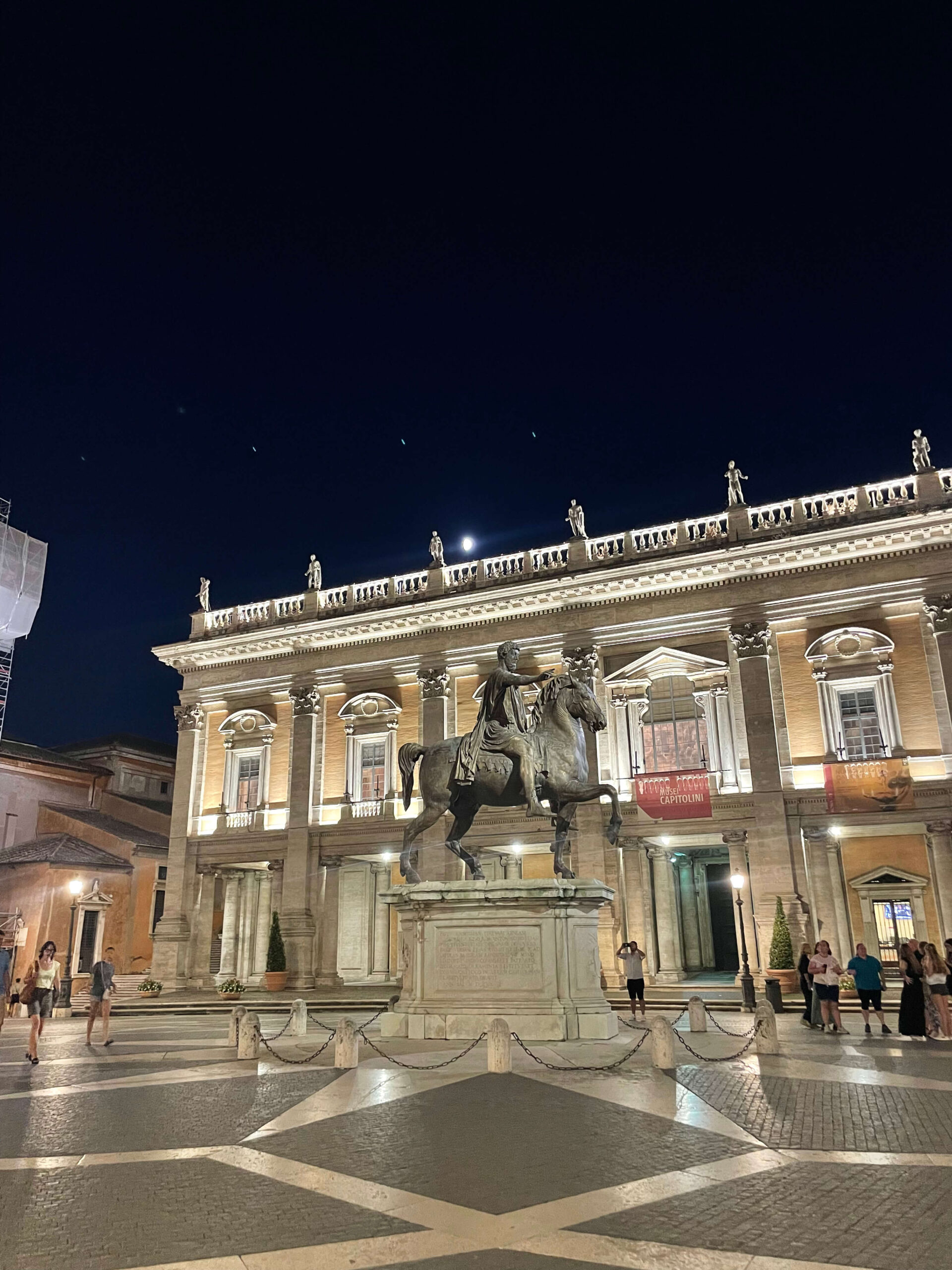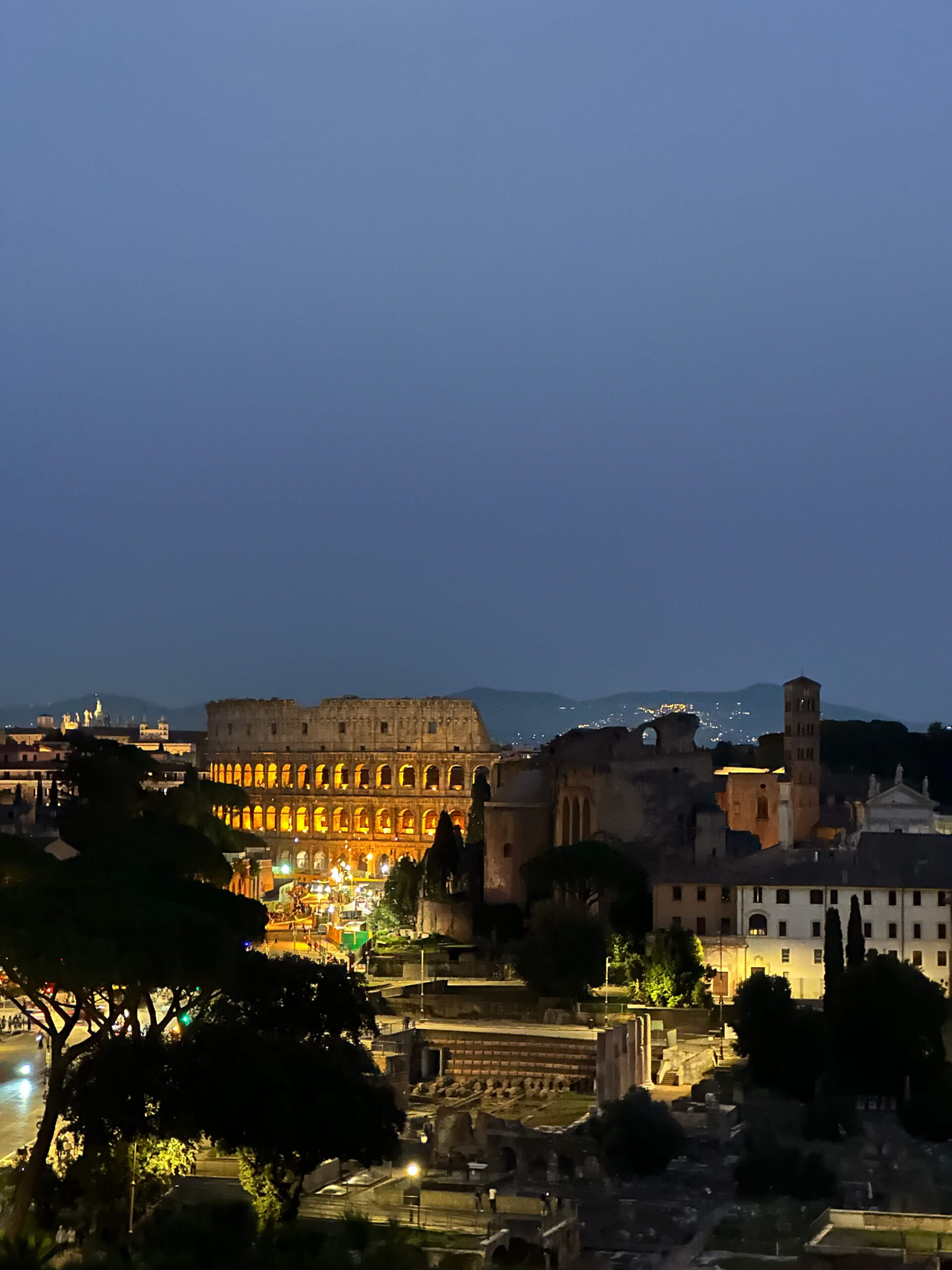 Rozpoczniemy naszą eskapadę na Wzgórzu Kapitol, gdzie majestatyczny widok na oświetlone Forum Romanum wprowadzi nas w nocny klimat miasta. Następnie udamy się na Piazza Venezia, serce Rzymu, skąd podziwiać będziemy monumentalny Ołtarz Ojczyzny. Nieopodal znajduje się Koloseum, którego nocna iluminacja sprawia, że wygląda jeszcze bardziej imponująco niż za dnia.